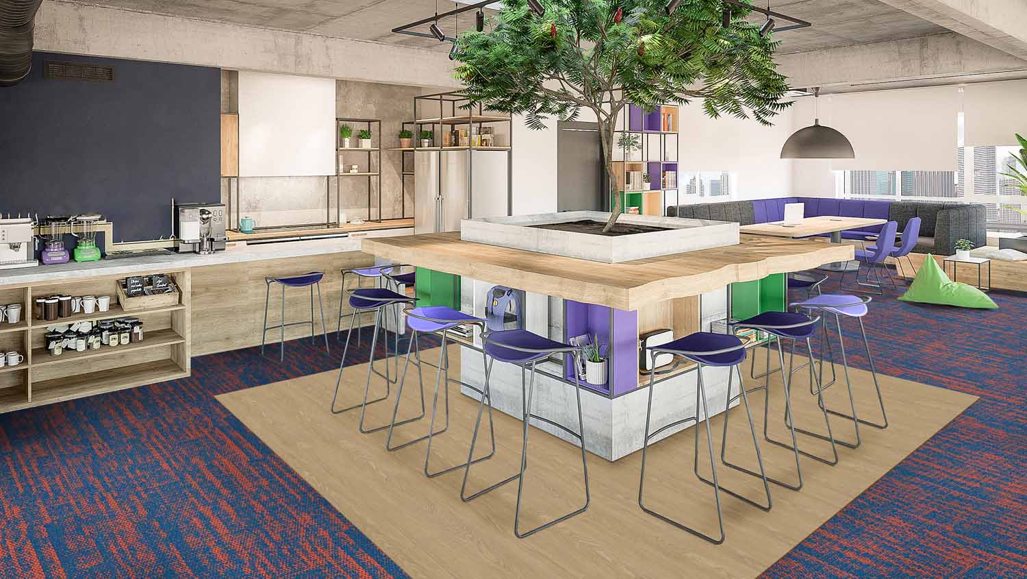 Inspired by the raw, unpredictable textures of the rocks and by the formations visible in raw slate or marble, Grid collection presents textured geometric shapes. Grid’s high level loops bring texture and comfort to the workplace. Grid is part of Geologic Structure’s series which color palette is comprised of warm and cool neutrals in light, medium and dark tones, providing a diverse range of color-shifting options. The palette also includes accents of yellow, red, pink, green, and blue tones to remind us the beautiful colors of the Danxia landform.